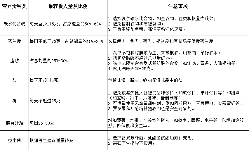 餐次安排:3次正餐和2-3次加餐,早、中、晚餐能量分别占10%-15%、30%、30%,加餐占5%-10%;有助于减少餐后血糖波动。