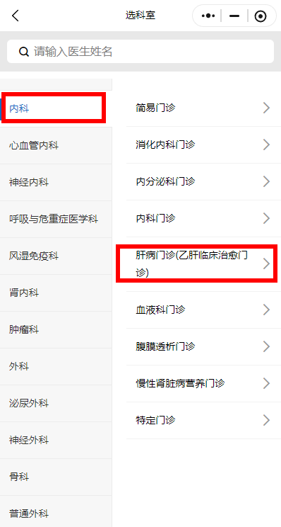 点击河源市人民医院服务号预约挂号:内科-肝病门诊(乙肝临床治愈门诊。
