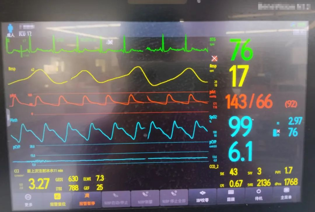 关键时刻,重症团队果断启用了PICCO监测技术。在PICCO技术的“精准导航”下,重症团队为他制定了个体化、动态调整的治疗方案:精确计算液体入量,优化血管活性药物组合。几天后,患者的心脏功能逐步改善,肺水肿明显消退,呼吸机支持力度成功下调。一周后,患者顺利脱离呼吸机,病情稳定转出ICU,重获新生。