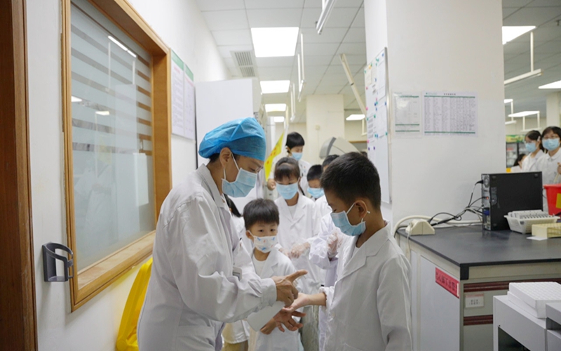 随后,孩子们参观了检验科的“大机器”:全自动生化分析仪、血细胞分析仪、离心机…… 短短半小时,从微观的细胞、细菌形态,到运转的检验仪器,孩子们对父母工作中接触的微观世界,有了一场直观又奇妙的初体验。