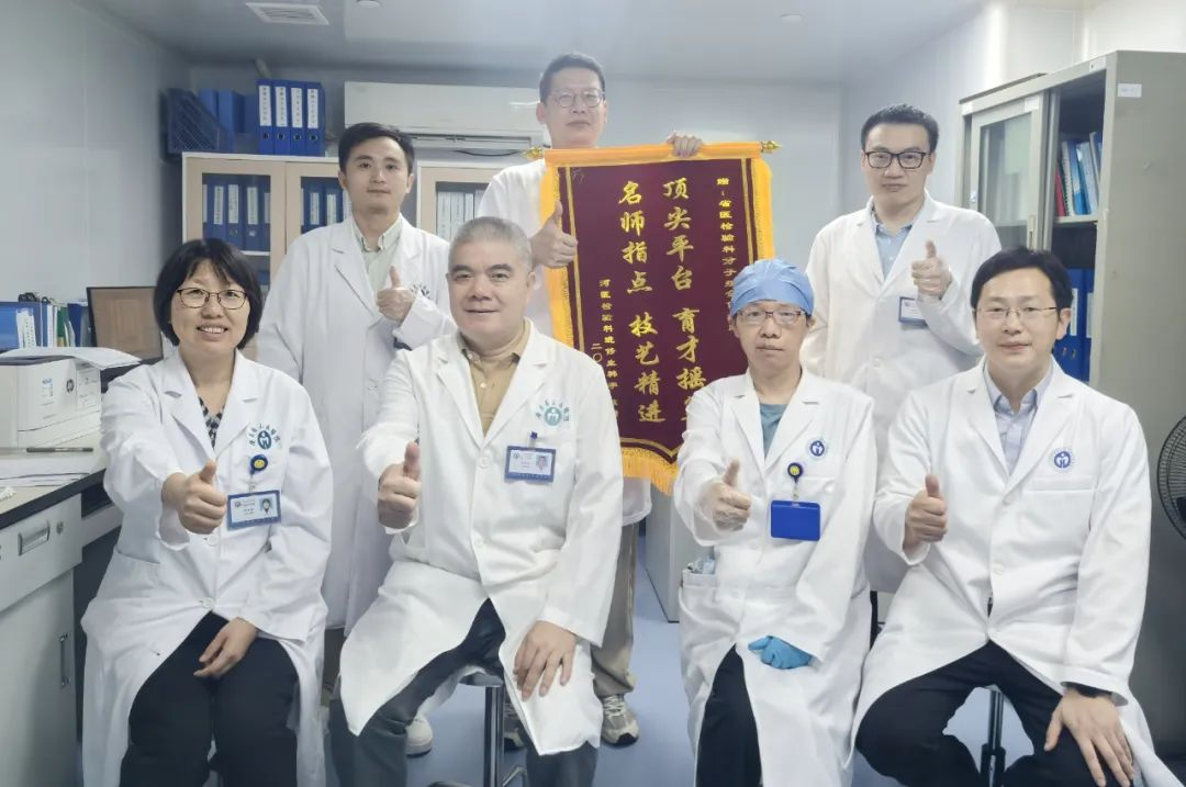 ▲我院医学检验科韩宇赴省医进修时与科室合照(后排中间)