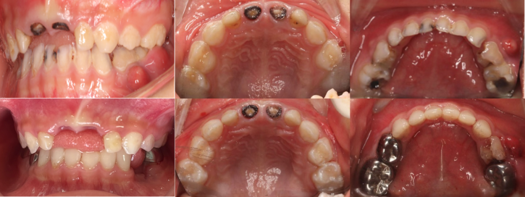 两名患儿均存在多颗乳牙龋坏、牙髓感染甚至残根残冠的问题,因年龄小、配合度低,传统门诊治疗难以完成。口腔科多学科联合治疗小组针对不同的情况为每位患儿制定个性化、系统化的全程诊疗方案。病例一由刘钦捷主治医生、谭晓颖医师和黄芬主管护师全程在橡皮障下2小时就完成了全口口腔问题的处理,包括龋齿充填术、活髓切断术、金属预成冠修复术、滞留乳牙拔除术、即刻固定嵌入式间隙保持器的制备及全口涂氟等。病例二由谭晓颖医师和林慧芬主管护师完成,包括一次性根管治疗、前牙美学微创树脂冠修复、金属预成冠修复、窝沟封闭、残根残冠拔除等治疗。这些在门诊需要孩子与家长请假复诊多次的治疗操作,如今只需2至3小时即可完成。