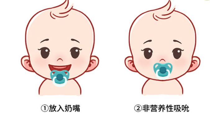 将把安抚奶嘴放在嘴里,提供非营养性吸吮2分钟。