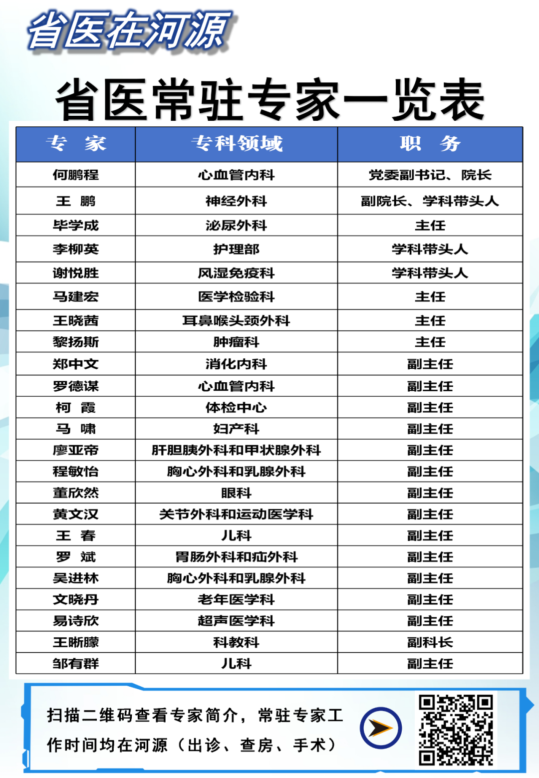 门诊时间:请在河源市人民医院官网或官方微信公众号上提前查询