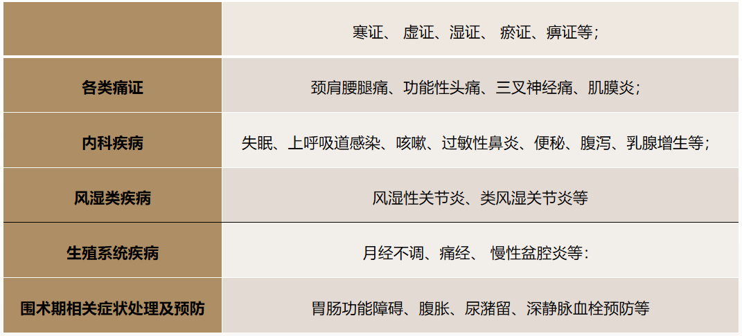 1.维护活动能力:温通经络,驱散寒湿瘀阻,有效缓解颈肩腰腿痛、关节酸痛,减轻疼痛对行走、弯腰、上肢活动等功能的影响,帮助维持日常活动范围和自理能力。改善局部循环,松解粘连紧张,促进关节和肌肉功能的恢复。