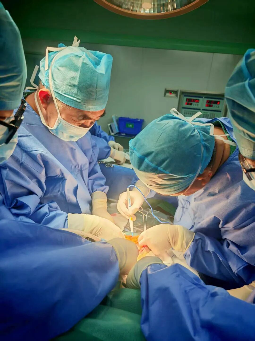 ▲姚学清主任(左)、司丕成主任(右)正在进行手术结肠癌根治术