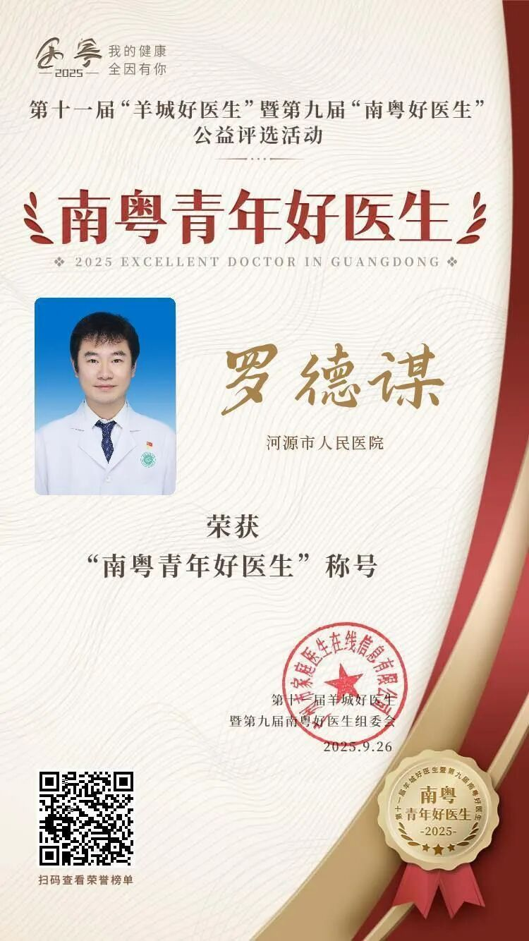 【喜讯】我院5名专家获评第九届“南粤好医生”称号