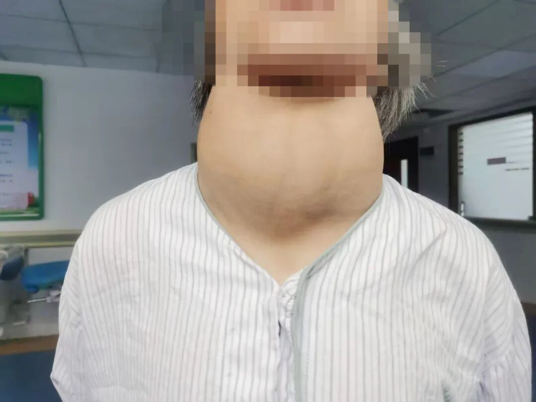 76岁患者李奶奶因颈前肿物明显增大至我院就诊,由杨四清副主任医师接诊。查体发现颈前肿物巨大,经甲状腺彩超及颈部CT检查,提示双侧甲状腺弥漫性显著增大,左侧叶最大直径达9.4cm,右侧叶最大直径7cm,纤维喉镜显示咽腔狭窄,手术难度和风险高。患者76岁高龄,既往合并甲亢性心脏病、慢性心功能不全、心房颤动及心脏瓣膜病等多种严重基础疾病,术前联合麻醉科、心血管内科等多学科讨论后,决定实施甲状腺切除术。针对患者存在气管受压狭窄及气管软化等困难气道情况,麻醉科凭借丰富经验,在患者清醒状态下成功实施电子支气管镜引导下的清醒气管插管,之后顺利转为全身麻醉。在麻醉科协助下,我科顺利完成巨大甲状腺切除手术,术中严格保护周围重要神经和器官。因患者基础疾病严重,直接拔管存在气管塌陷风险,术后带气管插管转入ICU监护,待病情稳定、顺利拔管后转回我科普通病房继续治疗。术后一周患者恢复良好,语言及进食功能正常,现已康复出院。