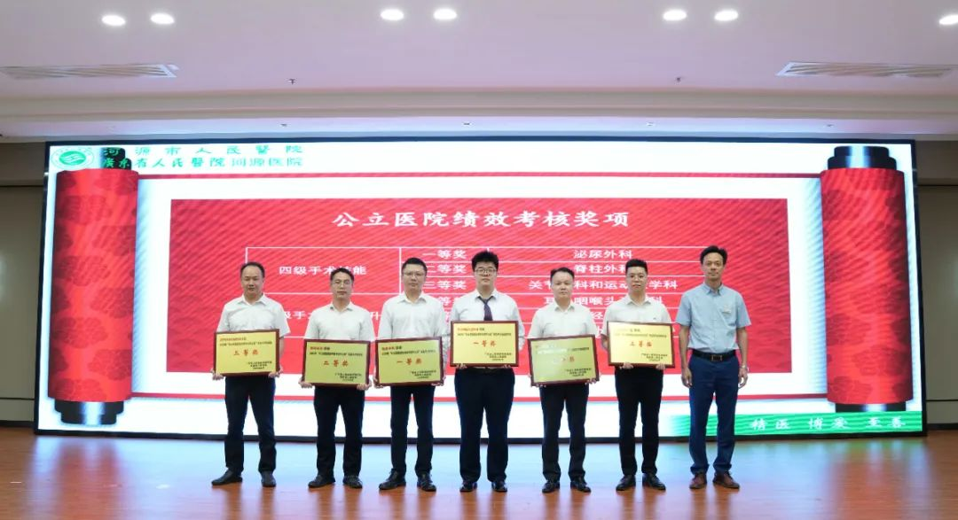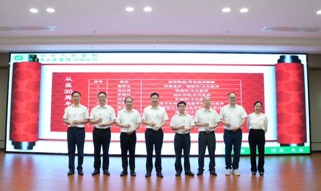 2025年“中国医师节”的节日主题是“德馨于行,技精于勤”。为弘扬崇高职业精神,团结凝聚全院医务人员,切实担负起推进健康中国建设、保障人民健康的神圣使命,8月19日下午,我院在五楼多功能会议室隆重举行第八个中国医师节庆祝暨表彰大会。院党委副书记、院长何鹏程及其他领导班子成员,中层干部,受表彰人员参加了此次表彰大会。本次活动共设立9个表彰项目,分别有公立医院绩效考核奖、病历质量奖、新技术新项目奖、质量管理持续改进奖、医德医风奖、优秀临床医师奖、优秀外出进修生奖、医疗卫生普法知识竞赛奖,并对从医30周年的医、技、药人员进行表彰。