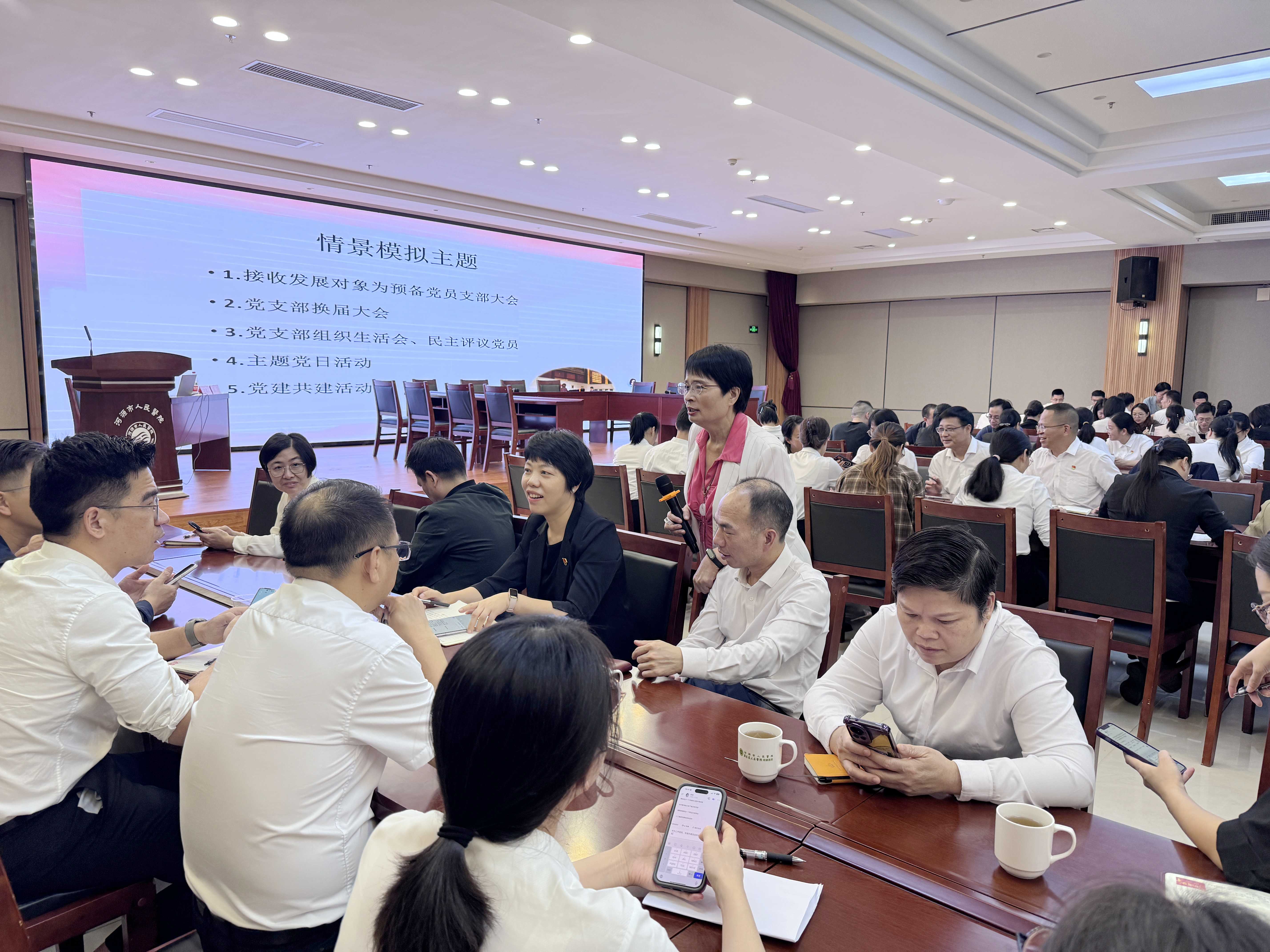 《医院党务工作实务情景模拟演练》课程精准聚焦实务难点,围绕发展党员、党支部换届选举、组织生活等党务工作关键环节设置模拟场景,现场分析解决“第一议题”学习流程不规范、投票统计环节疏漏、到会人数清点不严谨等常见问题。课程组织参训人员分组角色扮演、全程沉浸式演练,助力党务工作者厘清工作思路、掌握规范流程、学会灵活应对策略,实现“从学理论到会实操”的跨越。