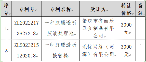 河源市人民医院专利权转让公告(咨询编号:CGZX-2025-001-KJK)于2025年11月18日15时00分在河源市人民医院内科三楼技能中心会议室进行专利转让价格咨询。经评审小组综合评定,现对结果进行公示: