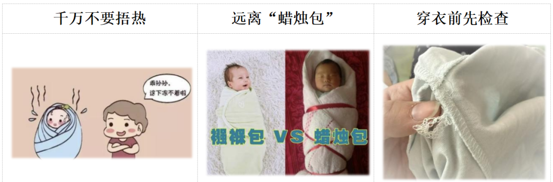 2.远离“蜡烛包”。把宝宝四肢拉直,用包被紧紧裹住,这是非常不科学的!不仅影响宝宝骨骼发育和血液循环,还会因为无法散热而导致捂热。请使用现代的婴儿睡袋,既保暖又安全,还能给宝宝安全感。