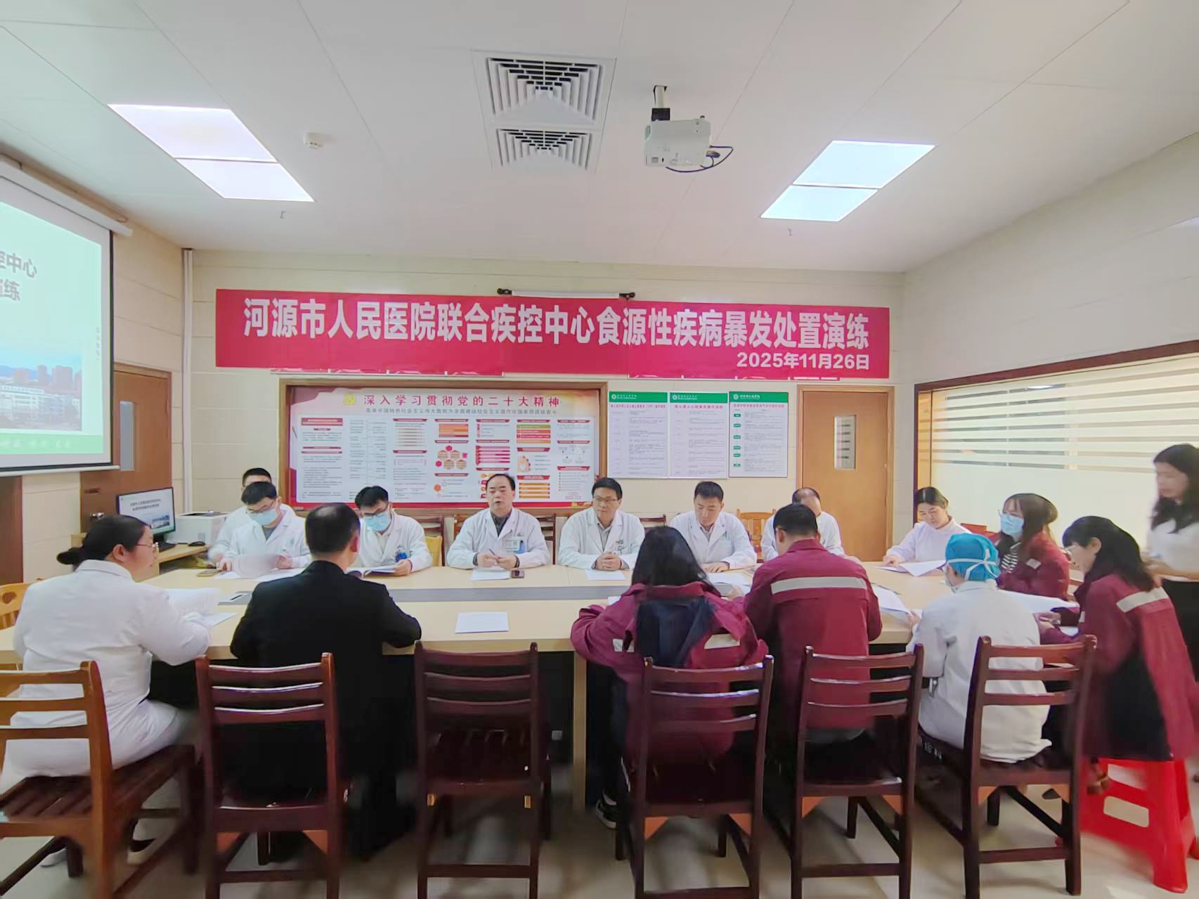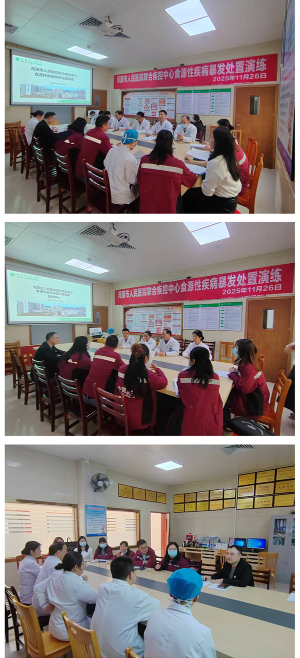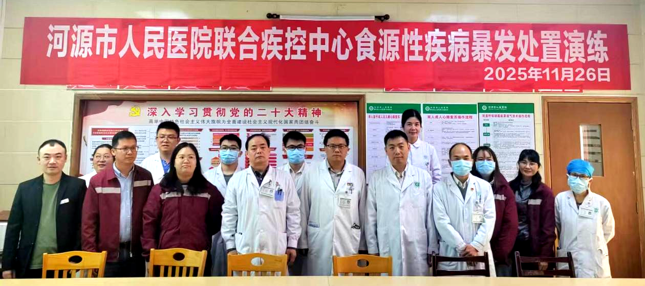 为全面提升医疗机构与疾控部门应对突发公共卫生事件的协同处置能力,11月26日,在我院丁美祥副院长主持下,我院牵头联合河源市疾病预防控制中心、源城区疾病预防控制中心,组织院内医务部、防保科、急诊医学科、重症医学科、儿科、大内科等科室,成功举办了一场模拟钩吻中毒引发的食源性疾病暴发应急处置演练。此次演练旨在检验应急预案的科学性、实用性和可操作性,强化多部门联动机制,保障公众生命健康安全。