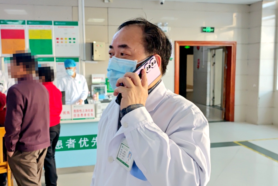 ▲医务部负责人刘恒接获通知并启动院内应急预案