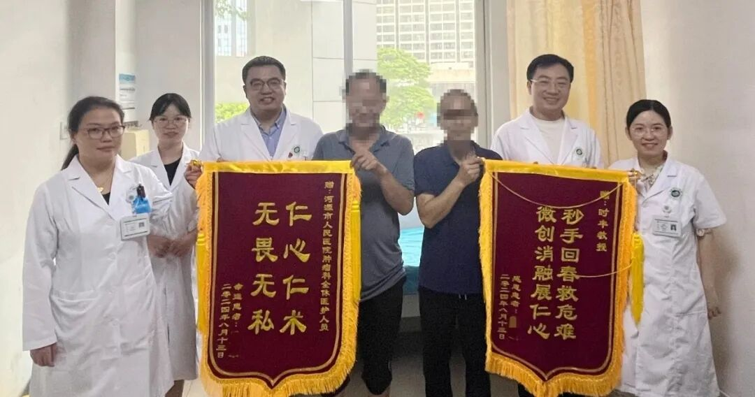 “医学知识迭代不息,唯有保持终身学习和思考,才能为患者提供更优质的诊疗服务。”这是吴昆鹏医师常挂在嘴边的话。近年来,广东省人民医院专家团队到我院开展对口帮扶工作,这成为他精进专业的宝贵契机。为了不辜负这份难得的学习机会,吴昆鹏如“海绵”般主动汲取知识养分。主动学习、参与疑难病例讨论、多学科联合诊疗,不放过任何一个汲取先进经验的机会。凭借这份勤学笃行的劲头,为后续攻克疑难病症打下坚实基础。通过肿瘤多学科联合诊疗团队,他精准把握局部介入治疗时机,联合省医介入科援助专家时丰博士,为3例鼻咽癌肝转移患者成功消融肝转移瘤。目前,这3例远处转移的鼻咽癌患者均达到无瘤状态,其中生存时间最长者已超4年,患者特意送上锦旗表达赞誉。
