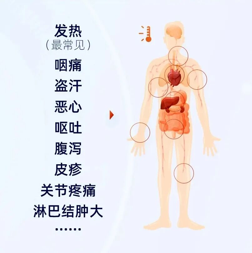 急性期(感染后2-4周):像一场重感冒(发烧、喉咙痛、皮疹),极易被忽视。