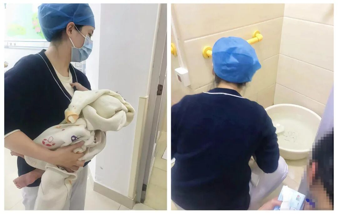 ▲梁珊珊护士指导家属为宝宝洗澡