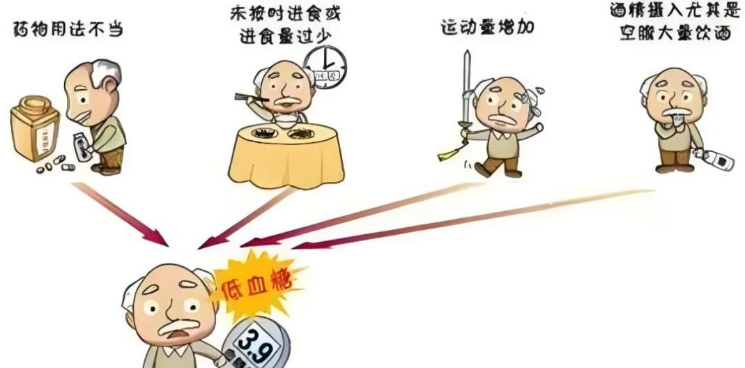 2.饮食不规律:注射胰岛素或服用降糖药后未及时进餐、过度控制饮食,进食过少或碳水化合物摄入不足。