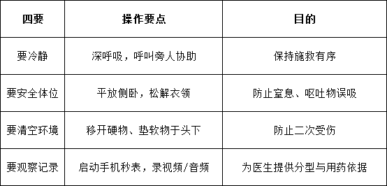 一句话口诀:侧卧清场记时间,不压不塞不灌水;五分钟抽不停,立刻拨打120。