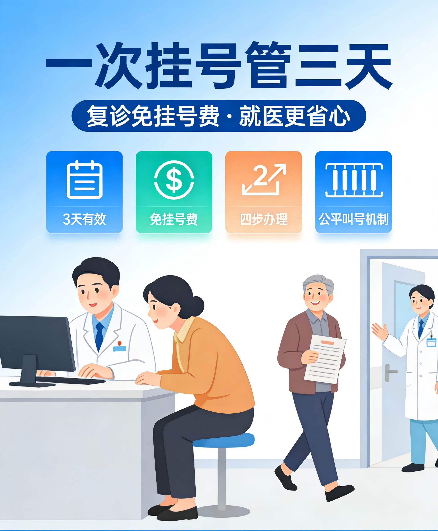 一次挂号,三日有效;一次诊疗,全程无忧。