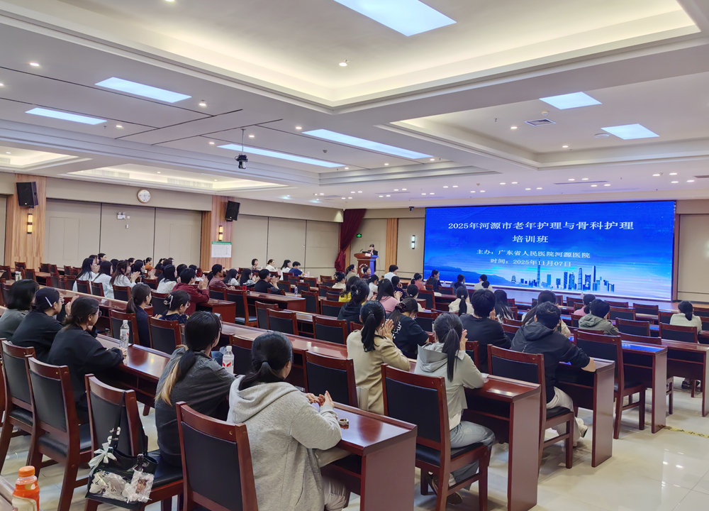 为积极响应国家推进护理事业高质量发展的号召,聚焦老年护理与骨科护理两大重点领域的能力提升,2025年11月7日,河源市老年护理与骨科护理培训班在我院成功举办。本次培训班特邀多名省、市级知名专家进行授课,吸引了河源市各地区120余名护理人员参加。