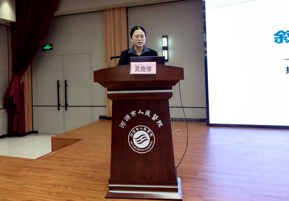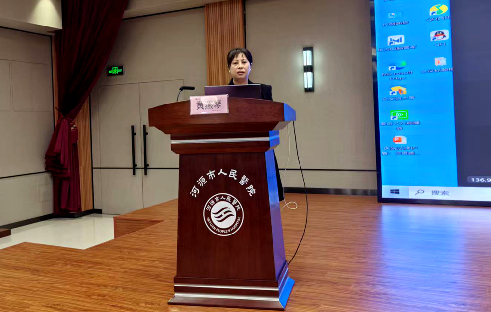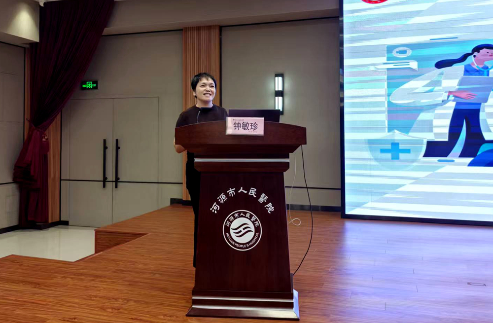 ▲河源市深河人民医院护理部副主任钟敏珍授课