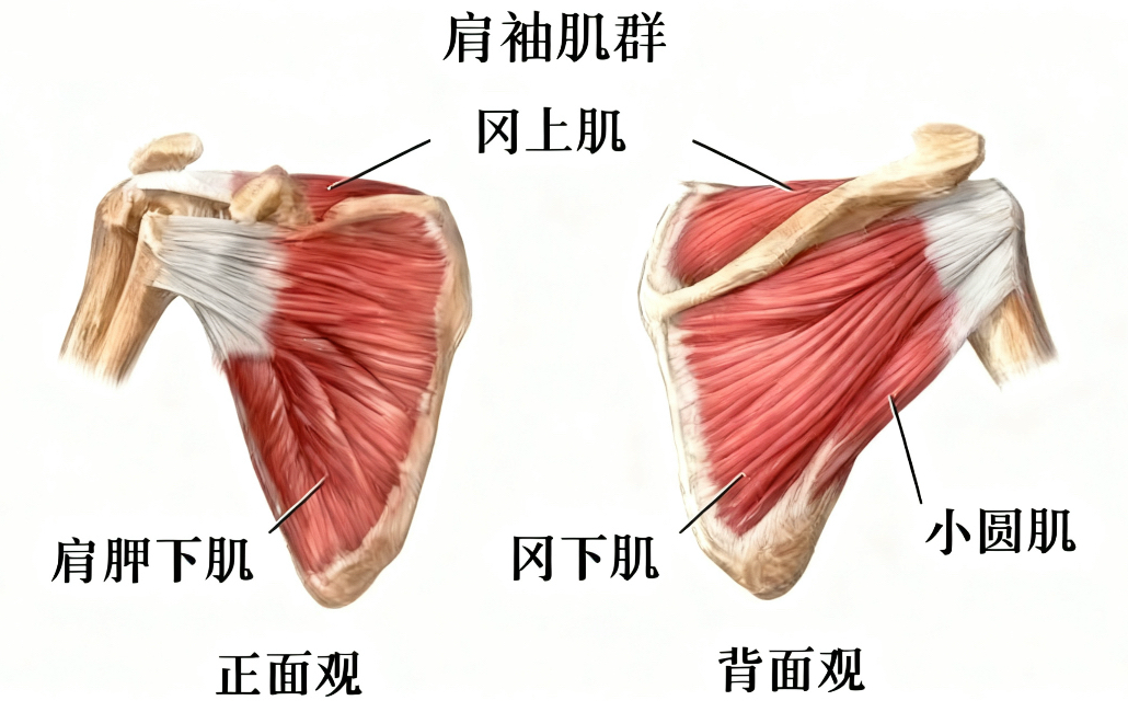 肩袖是由冈上肌、冈下肌、肩胛下肌和小圆肌这四块肌肉的肌腱组成的“袖子”样结构,包裹在肩关节周围,就像肩关节的“守护者”,负责肩关节的稳定和各种复杂运动。