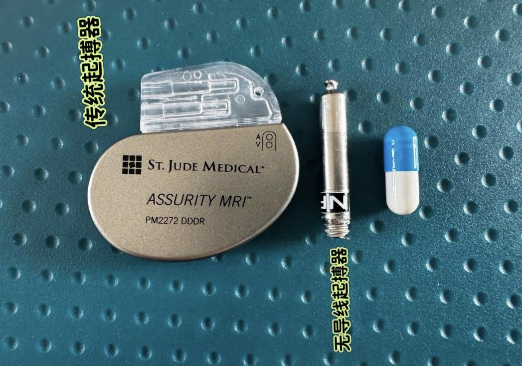 ▲Aveir无导线起搏器以及与传统起搏器大小对比图