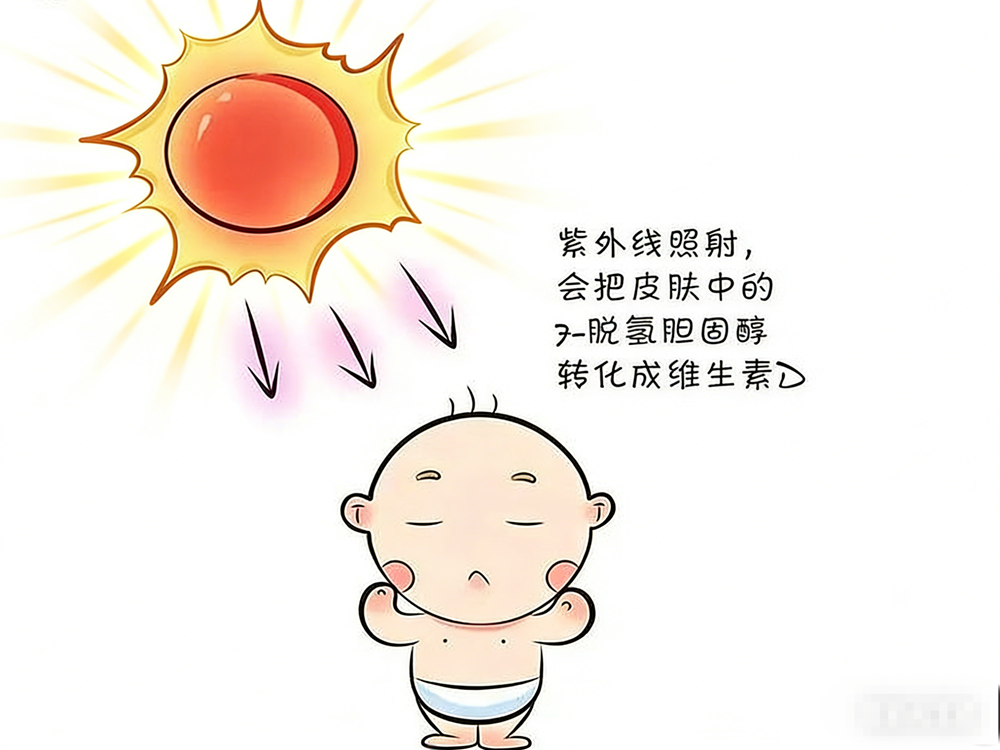 1.高效补维D促钙吸收:紫外线是天然“维D加工厂”,能让宝宝皮肤合成维生素D,进而帮助钙、磷的摄取吸收,不仅能助力骨骼钙化、预防佝偻病,还能减少因缺钙导致的睡眠不安、盗汗等问题。