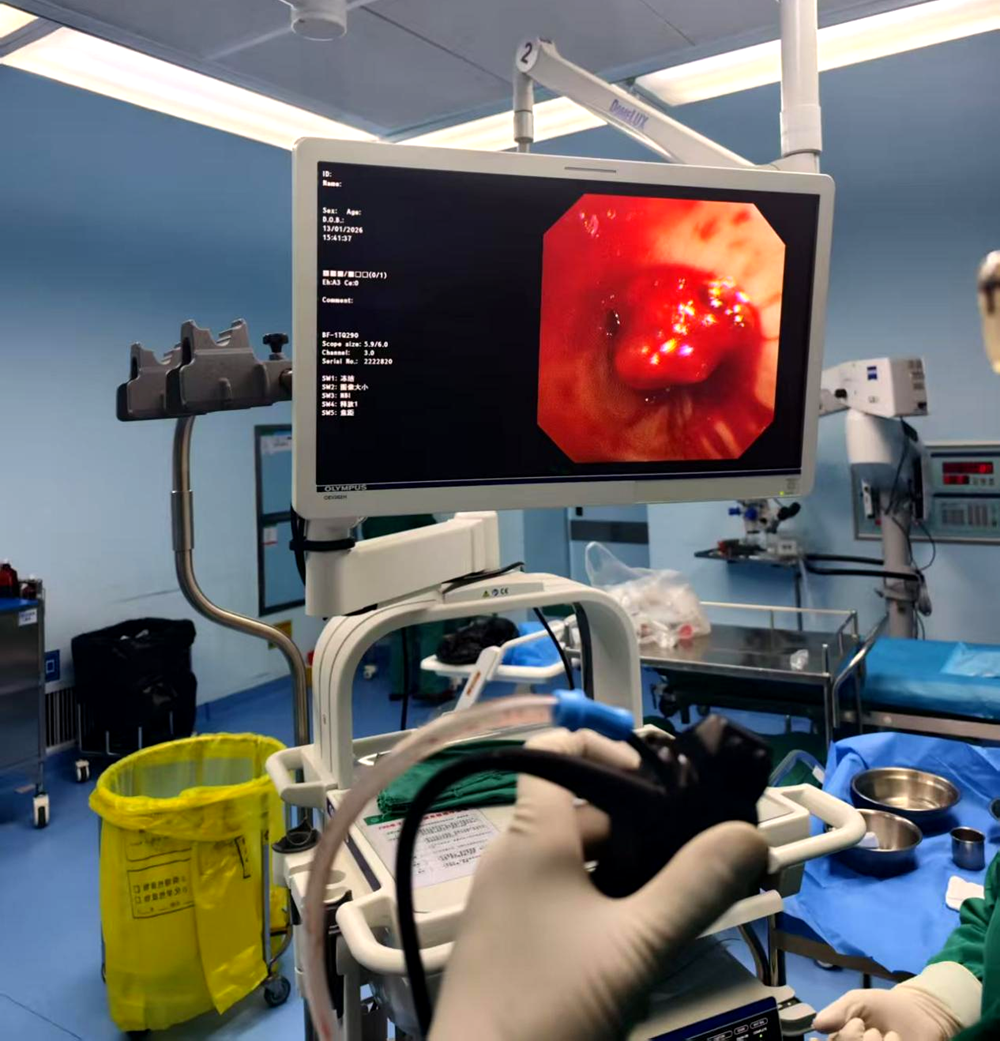 因患者病情危重,我院第一时间启动多学科会诊,介入血管外科、重症医学科专家床旁研判,排除外出检查及单纯转入ICU的可行性,传统止血药物亦效果不佳。杨龙峰团队果断敲定支气管镜下氩气刀止血术,该技术微创精准、止血快,经家属知情同意后,联合麻醉科开启气道绿色通道。