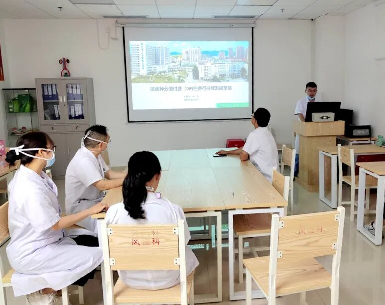 在医保科挂职期间,刘杰始终以一名“新兵”的姿态,虚心学习。在钟小劲科长和全体医保科同事的引导下,逐步熟悉相关医保政策。2025年1月开始接手“住院患者按病种分值付费(DIP)”的管理工作。向临床科室传达、解读医保政策要点,参与组织院内医保知识培训二十余场,努力充当临床与医保管理之间的“翻译官”和“联络员”。深入各临床科室进行医保政策培训,内容包含讲解按病种分值付费控费规则、付费的计算方式、DIP分值库的不足等共性内容以及针对各个临床科室的个性控费内容,引导临床科室分析各自科室的数据,挖掘适合本专科的控费策略。指导通过规范病历书写、准确选择诊断和手术操作编码来合理体现劳动价值。
