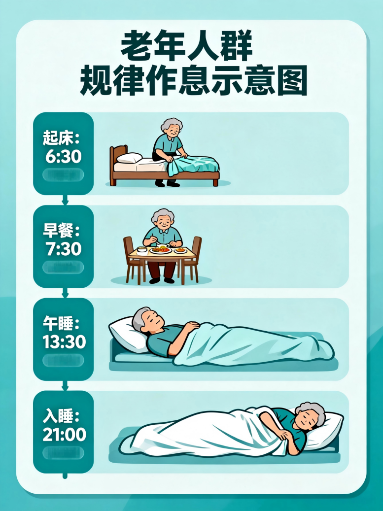 节日期间的守岁、打牌、走亲访友,很容易让老年朋友打破日常作息,而作息紊乱会直接导致神经内分泌失调,引发血压、血糖波动,降低机体免疫力,规律作息比 “补觉” 更重要。
