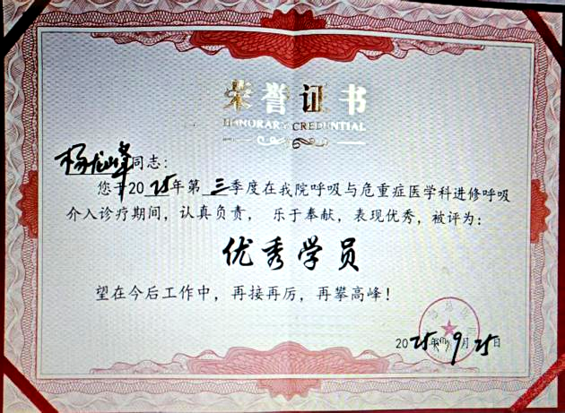 “医学没有止境,停止学习就意味着被淘汰。”这是杨龙峰常挂在嘴边的话。他是这么说的,更是这么做的。近年来,杨龙峰敏锐洞察到介入呼吸病学技术在肺部疾病诊疗中的广阔应用前景,毅然远赴广州、北京等地进修深造。进修期间,他争分夺秒、潜心钻研,白天在手术室全程观摩实操、虚心求教,晚上便反复研读手术录像、梳理诊疗思路,常常学习至深夜;尤其在北京进修期间,他更是深耕不辍,累计撰写了八万多字的学习笔记,将所学所思系统沉淀。凭借这份勤勉与执着,无论是在广州还是北京的进修学习中,他都获评优秀进修生,用实力践行着终身学习的医者初心。