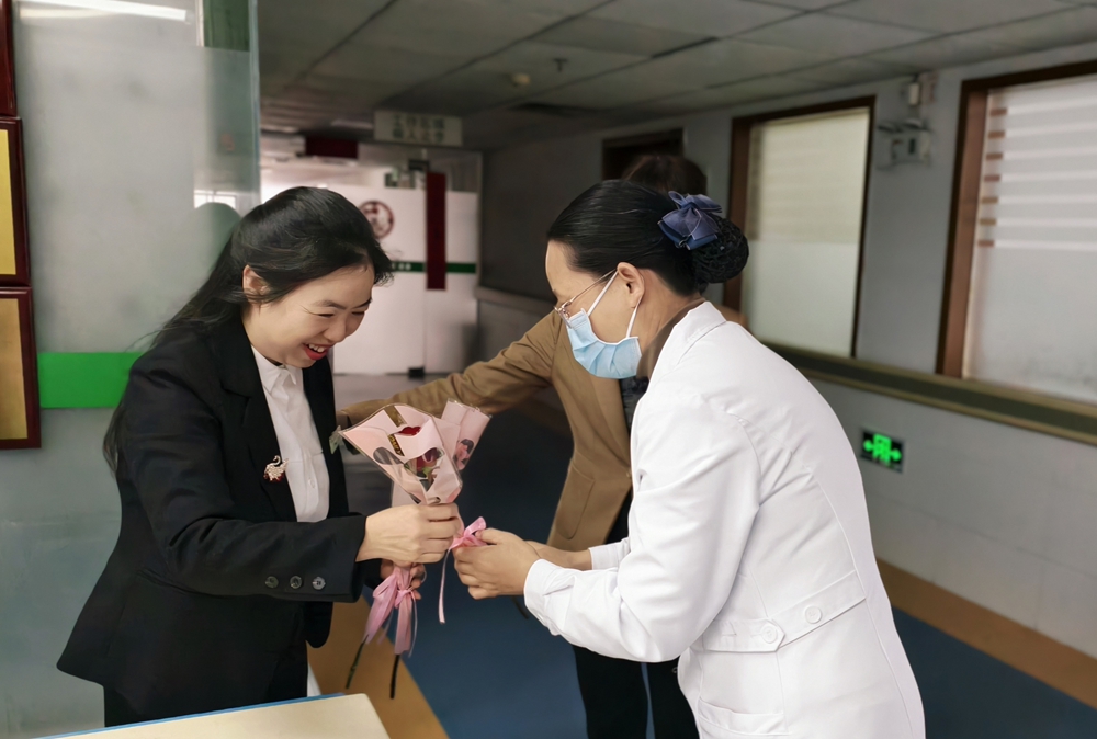没有繁琐的仪式,只有走心的陪伴。委员们细致询问大家的工作与生活近况,一句句平实的叮嘱,一束束芬芳的鲜花,一块块满载情谊的蛋糕,悄悄驱散了岗位上的忙碌疲惫,让平日里默默耕耘的女职工们倍感温暖与鼓舞。这份直达一线的牵挂,既是节日里的暖心仪式,更是医院对全体巾帼医者坚守奉献的真切敬意,也让大家在忙碌的工作中,切实感受到了组织的关怀与归属感。