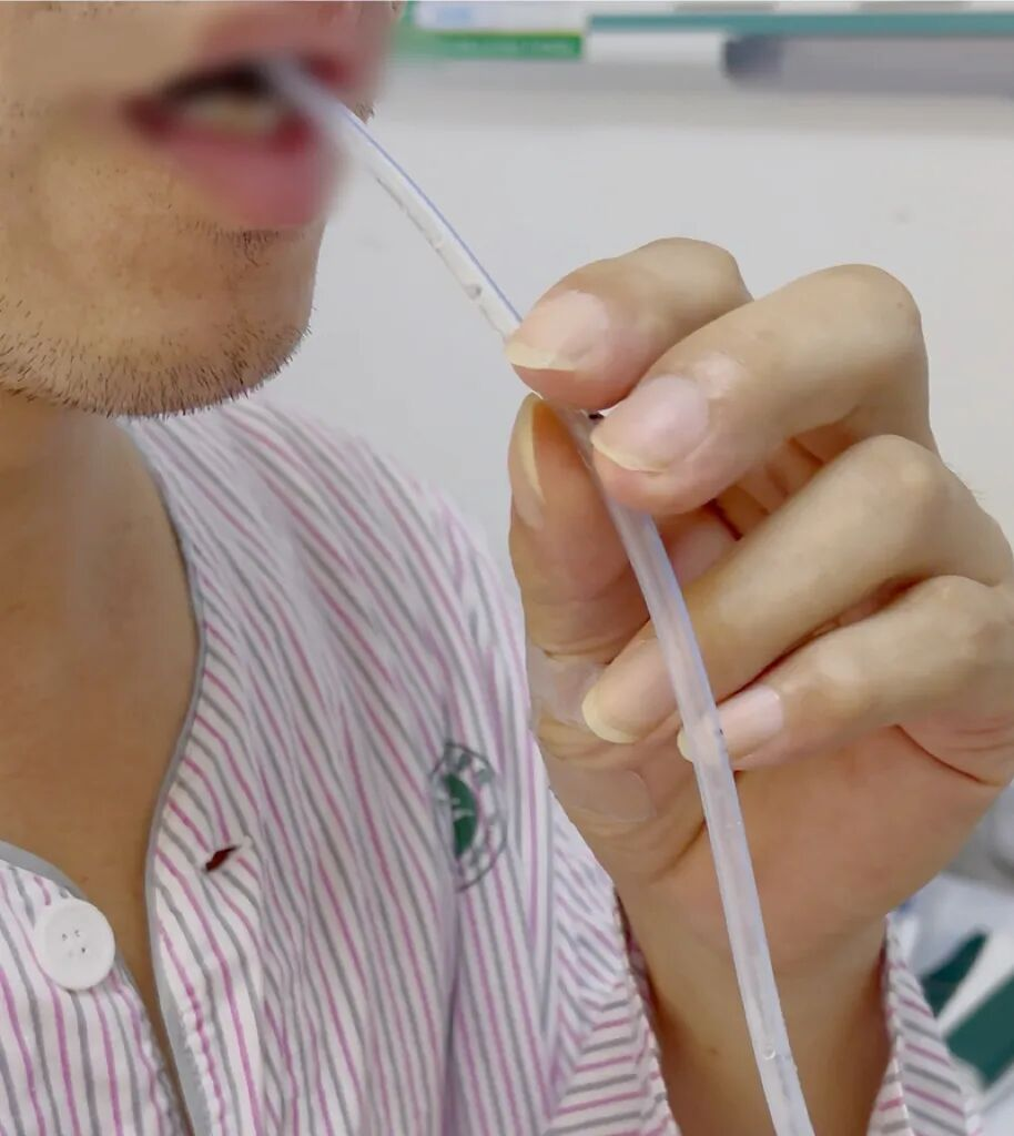 在取得张先生及其家属的知情同意后,由吞咽专科护士指导并实施了首次间歇性经口至食管管饲置管。操作过程顺利,张先生自述实际不适感远低于原先的担忧。当营养液缓缓注入体内并随后拔除导管,他轻抚“重获自由”的脸庞,脸上露出了久违的笑容。令人欣喜的是,在持续使用间歇管饲并配合系统的吞咽康复训练后,张先生的吞咽功能得到显著改善,已能逐步尝试经口进食。这不仅是一次营养的输送,更是一场信心与希望的重燃。