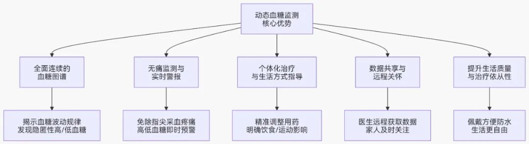 持续葡萄糖监测(CGM)是指通过葡萄糖感应器连续监测皮下组织间液葡萄糖浓度的技术,可提供连续、全面、比较可靠的全天血糖信息,揭示血糖波动的趋势和特点。