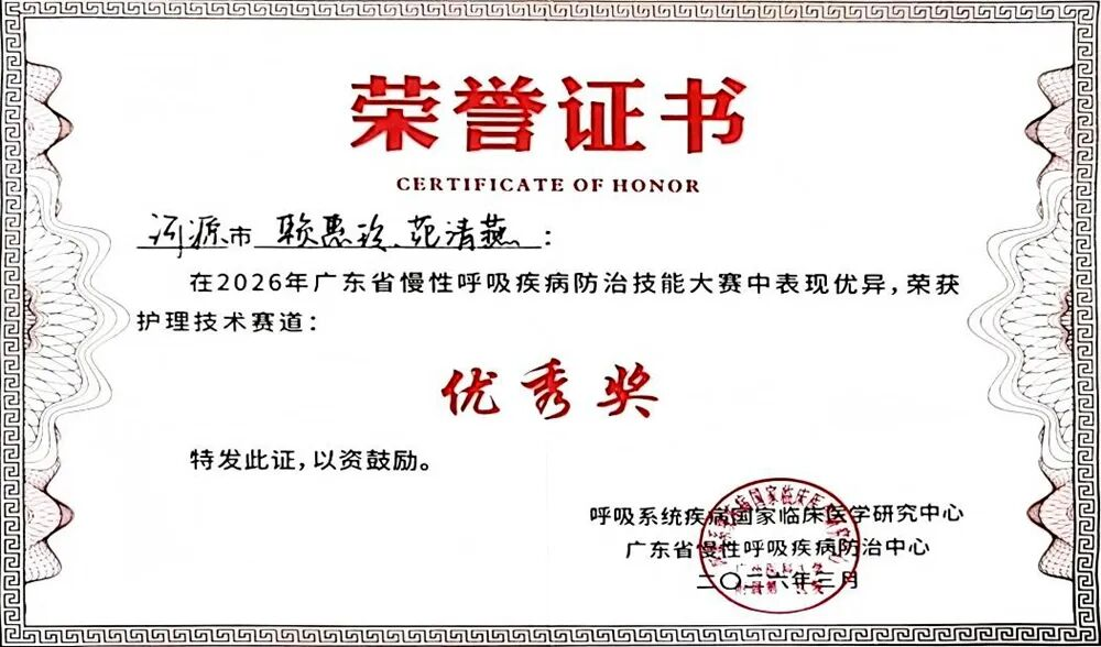 此次获奖,既是对我院一线医护人员专业能力的充分肯定,也是对我院长期以来坚持“以赛促学、以赛促练、以赛促建”人才培养机制的生动体现。下一步,我院将以此次比赛为契机,进一步发挥河源市慢性呼吸疾病防治中心的引领作用,健全慢性呼吸疾病“防、筛、诊、治、康、管”一体化服务体系,加强人才梯队建设,推动防治工作向标准化、规范化、精细化发展。