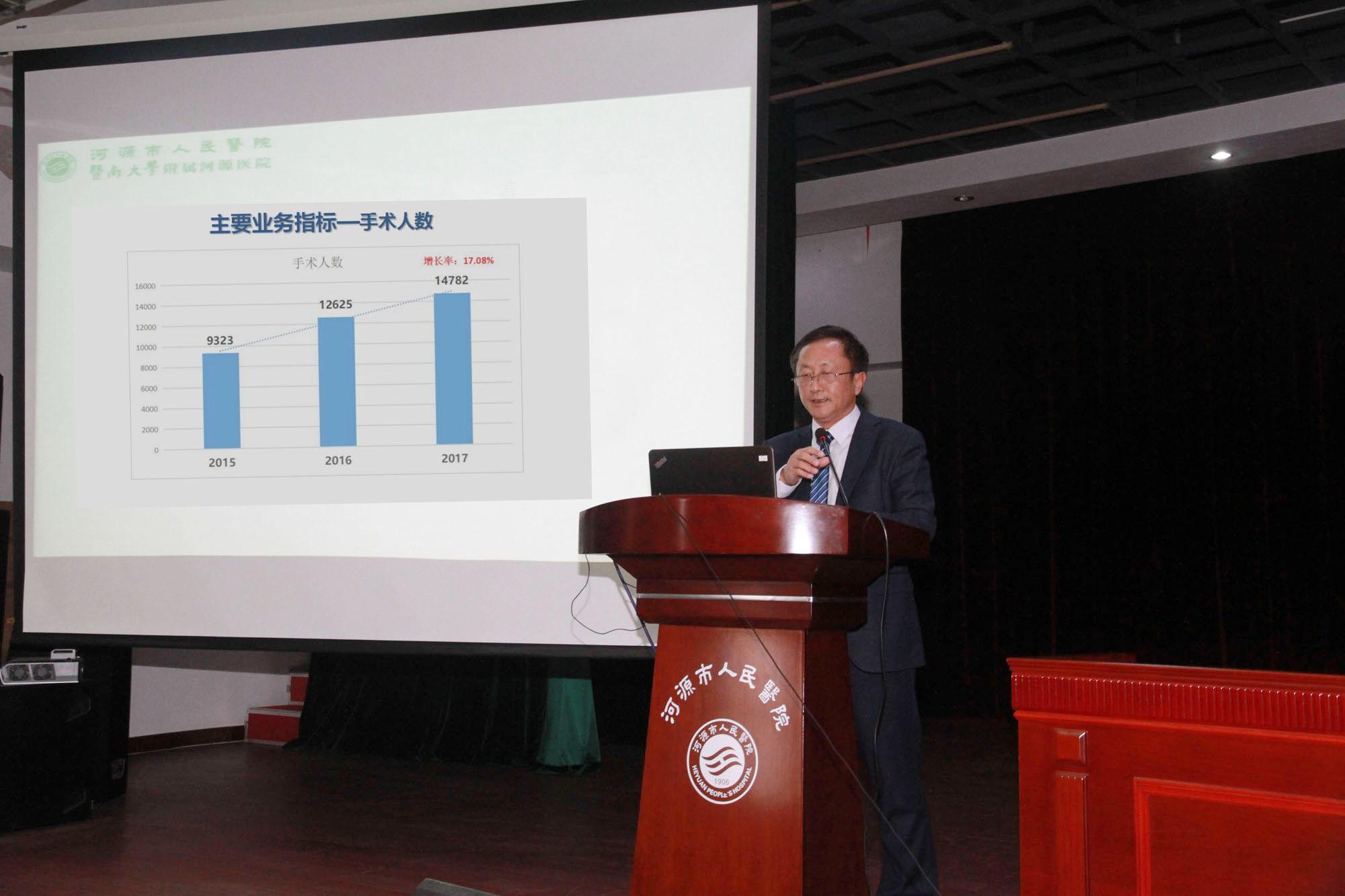 李志忠院长对2017年各项工作进行了全面总结,并对2018年工作进行了科学部署。李志忠院长指出,2017年是医院锐意进取、攻坚克难的发展之年,牢牢把握了改革和发展主题,围绕“卫生强市”的要求,全面取消了药品和耗材加成,调整了医疗服务价格,深入推进了城市公立医院改革,内科大楼投入使用并开放了12个病区,实施人才强院和科教兴院战略,牵头建立河源市医联体,加强了医院科学管理,业务保持持续增长,取得了良好的社会效益。2018年医院将以党的十九大精神为指引,深入贯彻习近平新时代中国特色社会主义思想,紧紧围绕建设粤港澳大湾区东北部区域医疗中心目标任务展开,突出内涵建设,强化内部管理,不断提升医疗服务水平和核心竞争力,真正做到内强素质、外树形象,使医院各项工作再上新水平、再创新辉煌。
