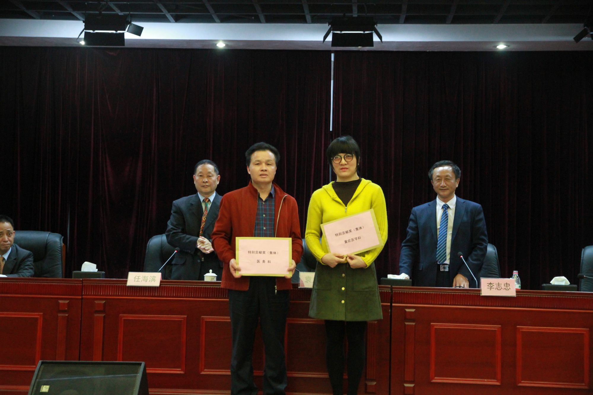 会议对先进科室、先进个人、新技术新项目获奖科室及对11.23事件中做出的特别贡献的科室和个人进行了表彰并颁奖。