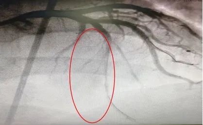 患者潘先生,曾因心绞痛反复发作住院诊治,行冠状动脉造影检查提示二支血管病变,其中左前降支近段慢性完全闭塞病变,闭塞段病变入口位于分叉处,无残端,曾尝试行冠状动脉介入治疗,正向开通该闭塞血管不成功。