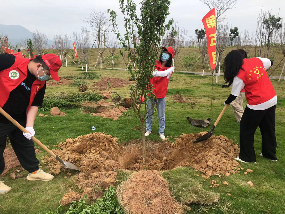 阳春三月,万象更新。为弘扬生态文明,打造环境优美,3月19日上午,我院办公室党支部、财务信息党支部、团委以三月份植树节为契机,开展“参加义务植树 共建绿色家园”志愿服务活动。