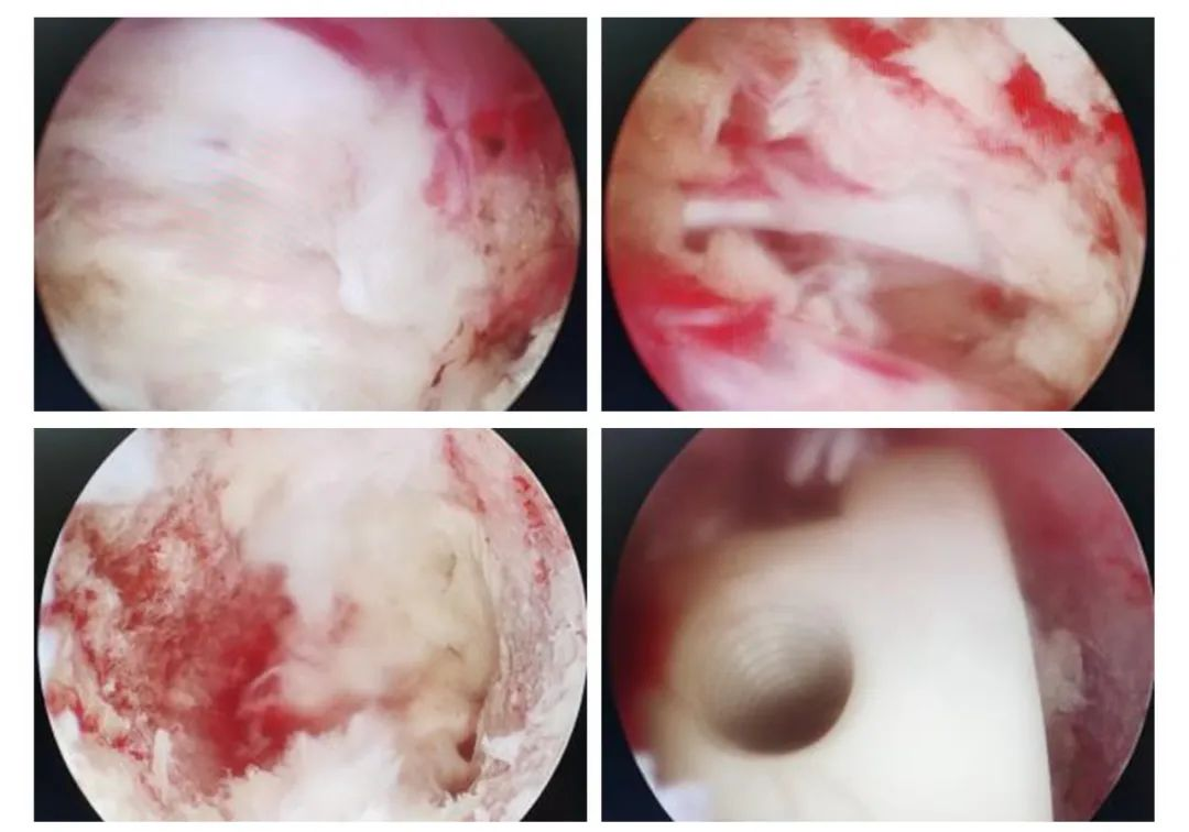 在完善充分的术前评估和准备后,按预定手术方案为该患者实施手术,如术前预料,术中在镜下见周围疤痕组织增生,组织结构紊乱、粘连与增生使得手术难度加大,稍有不慎,即有神经损伤风险,在陈子华主任指导下,脊柱外科微创团队术中仔细操作,如同“抽丝剥茧”般将疤痕组织剔除,经一番努力后,受压神经及脊髓硬膜得到彻底松解,神经组织在内镜视野下得到很好的保护,无一丝损伤;术后患者神经压迫症状消失,可以下床行走。