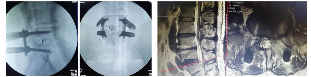 术后X线透视图及术后CT、Mr复查:内固定及植骨在位良好;椎间盘完全摘除,神经根松弛
