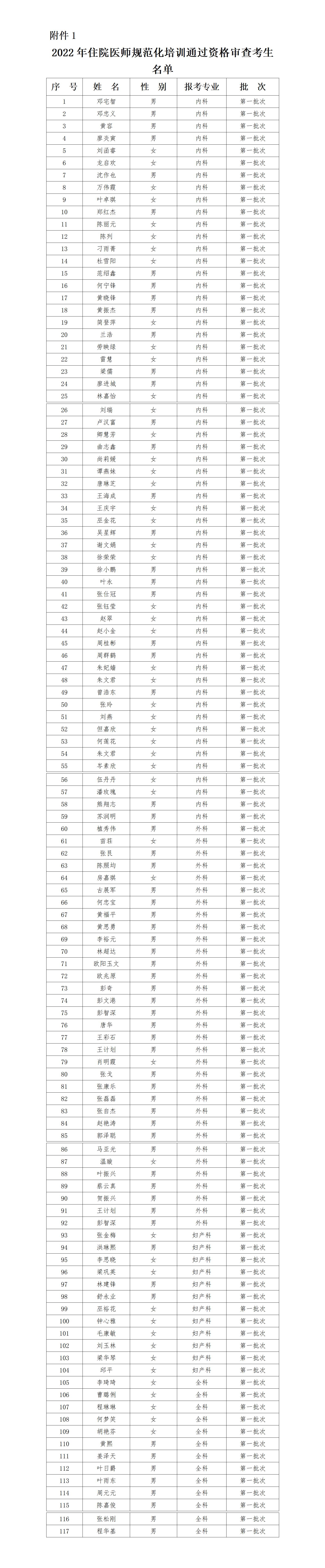 1. 2022年住院医师规范化培训通过资格审查考生名单