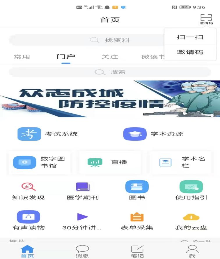 第二步:打开大医精诚,点击右上角输入邀请码:hysrmyy,进入到医院机构下。如图: