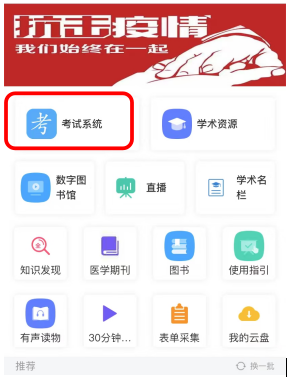 (1)进入主页面,点击【在线考试】;