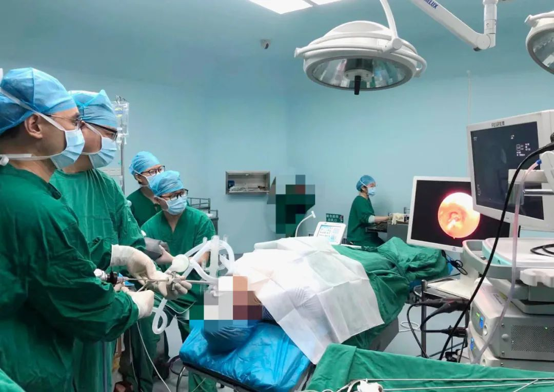 对硬质支气管镜下支气管肿物介入治疗术的必要性和并发症充分知情后,患者及家属签署同意书,罗少华主任带领学科团队在手术室全麻下为患者成功实施了手术,对气道肿物进行清除,术中出血少,未出现气胸等并发症,术后患者恢复良好,咳嗽减少,呼吸困难明显缓解。