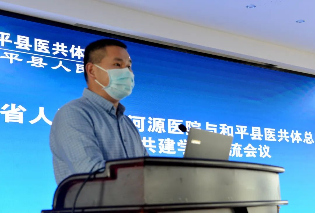 会上,和平县人民医院苏林兴副院长代表全体干部职工向前来指导交流的省医河源医院专家团队表示热烈欢迎,诚挚感谢我院多年来对和平县人民医院的倾力支持,希望今后在学科建设、人才培养、新技术新项目、双向转诊等方面加强沟通协调,紧密协作配合,增进两家医院的情谊和相互了解,逐步实现医疗技术同质化发展,将精湛技术和优质的医疗服务惠及当地群众。