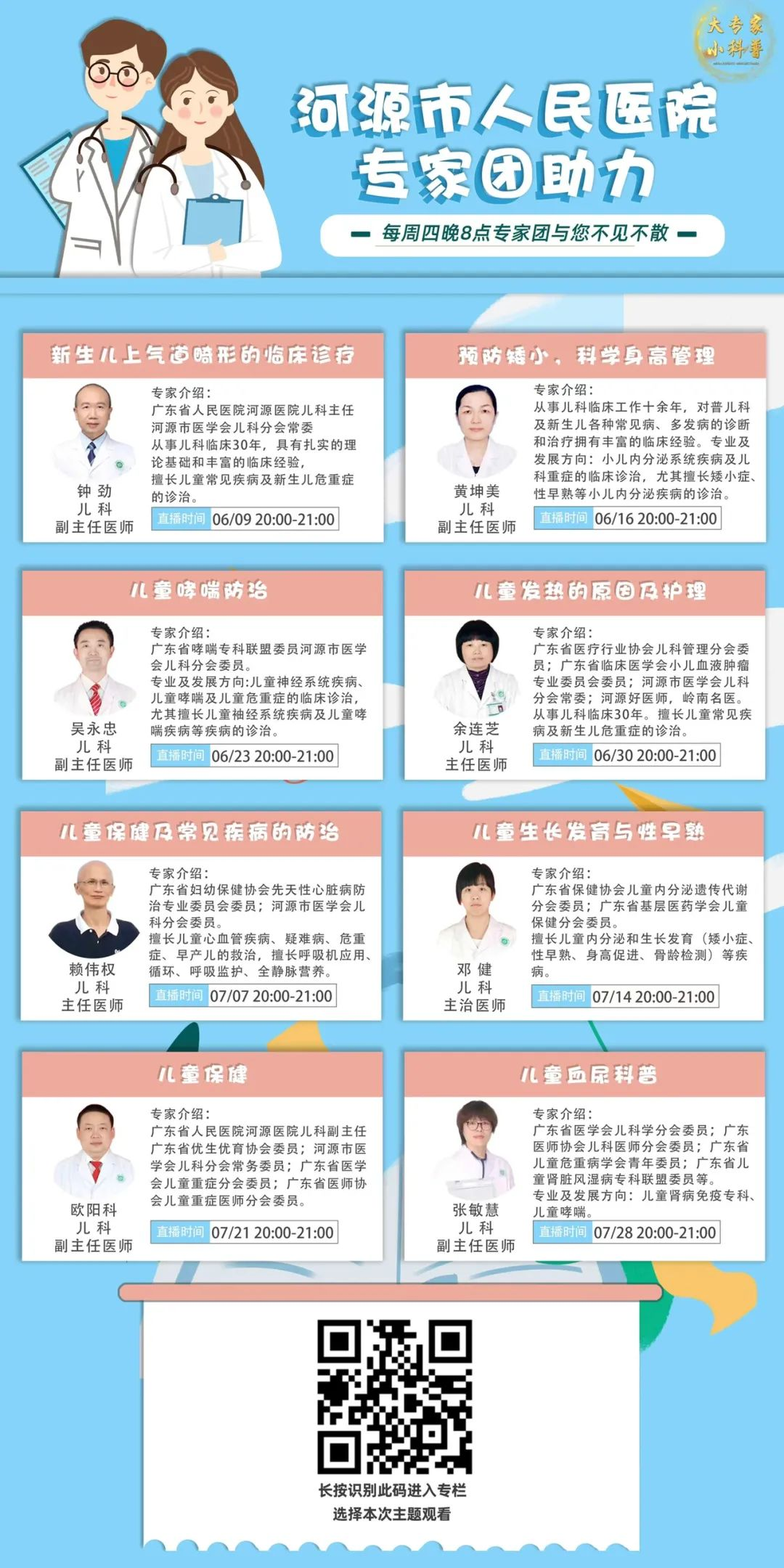 【预告】呵护童心 健康同行——我院儿童健康成长系列线上科普讲座开课啦!