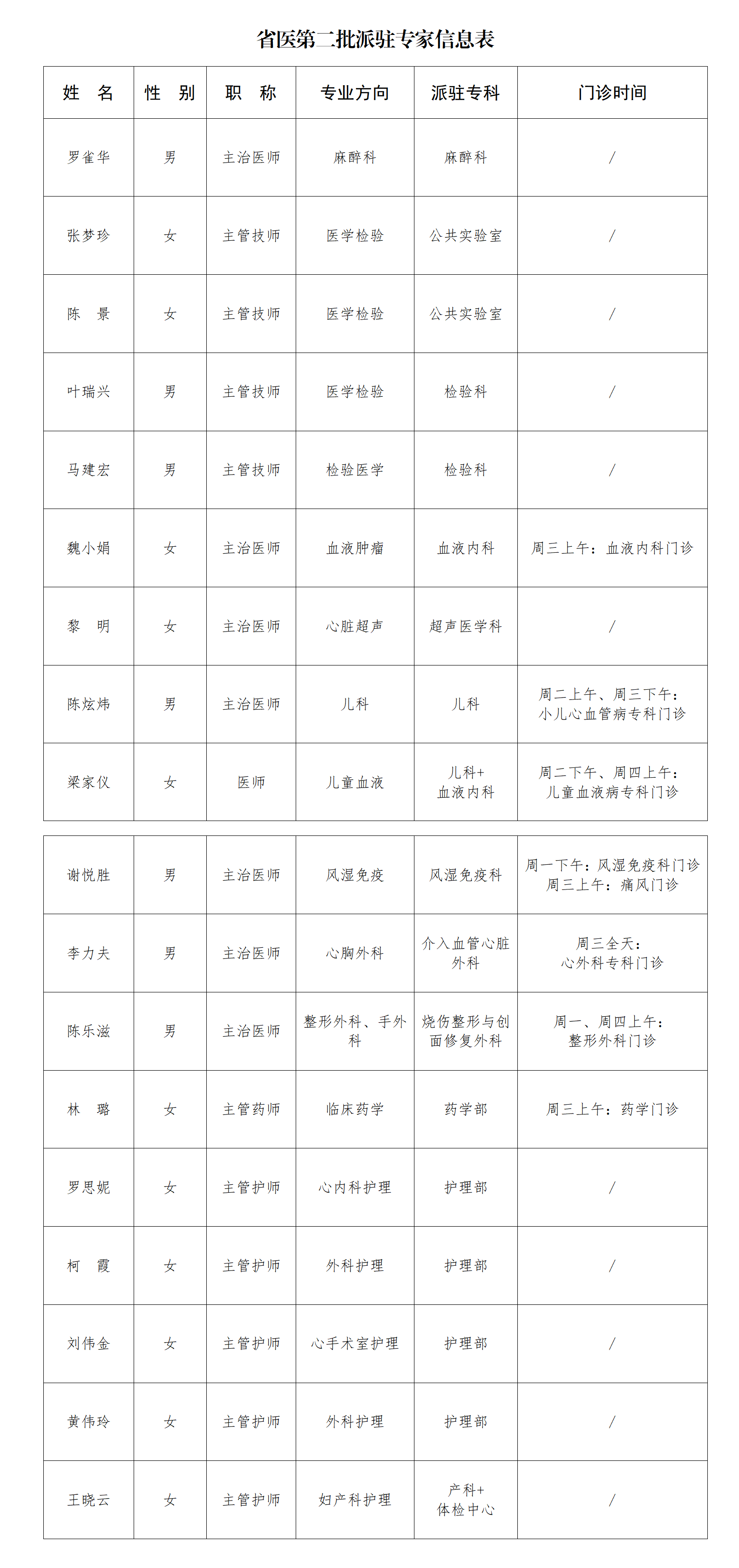 省医第二批派驻专家信息表